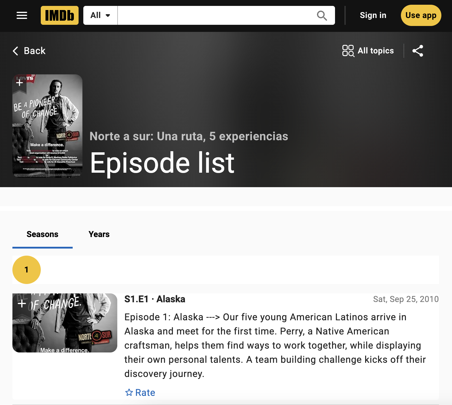 Norte a Sur: Una Ruta, 5 Experiencias became the first ever branded 10-episode docu-reality series on Discovery en Español, following five young American Latinos traveling the Pan-American route from Anchorage, Alaska to Ushuaia, Argentina.