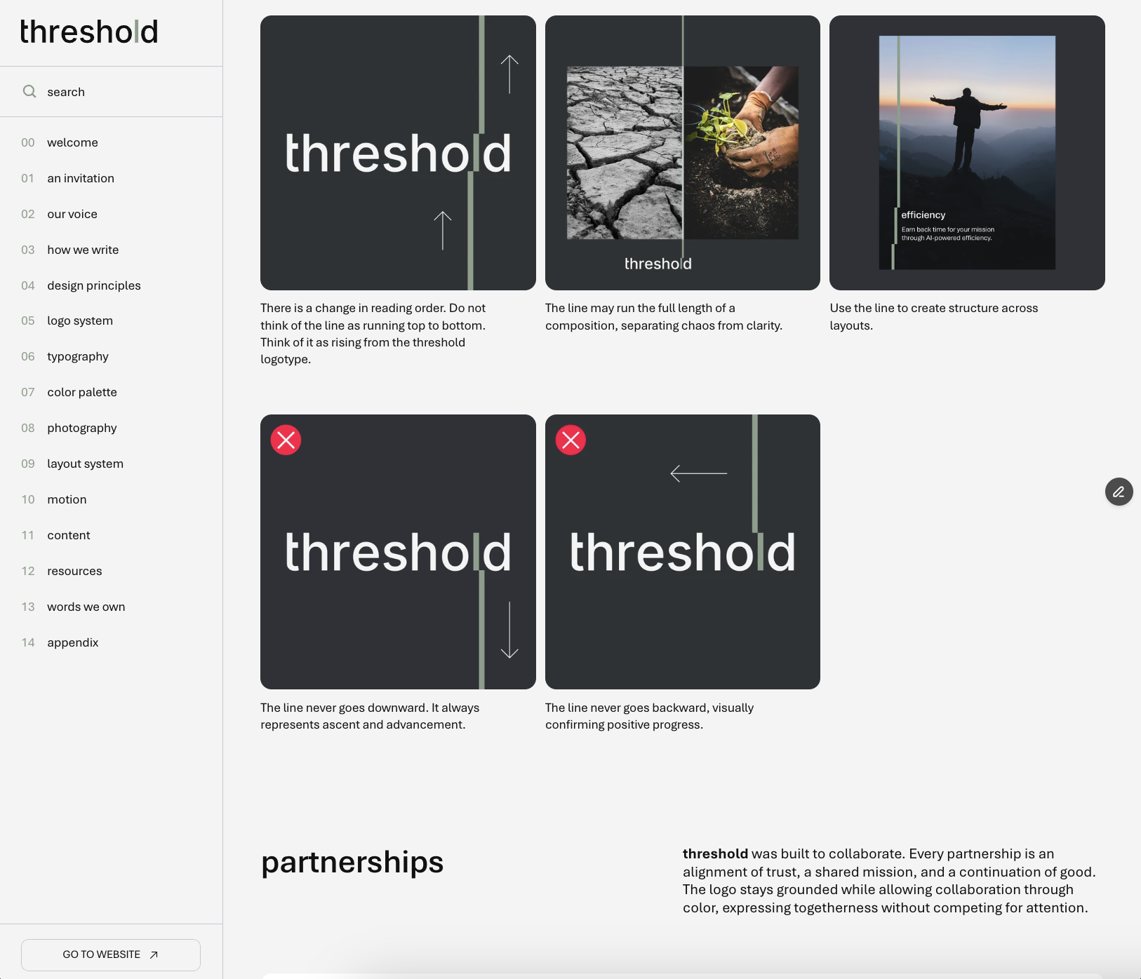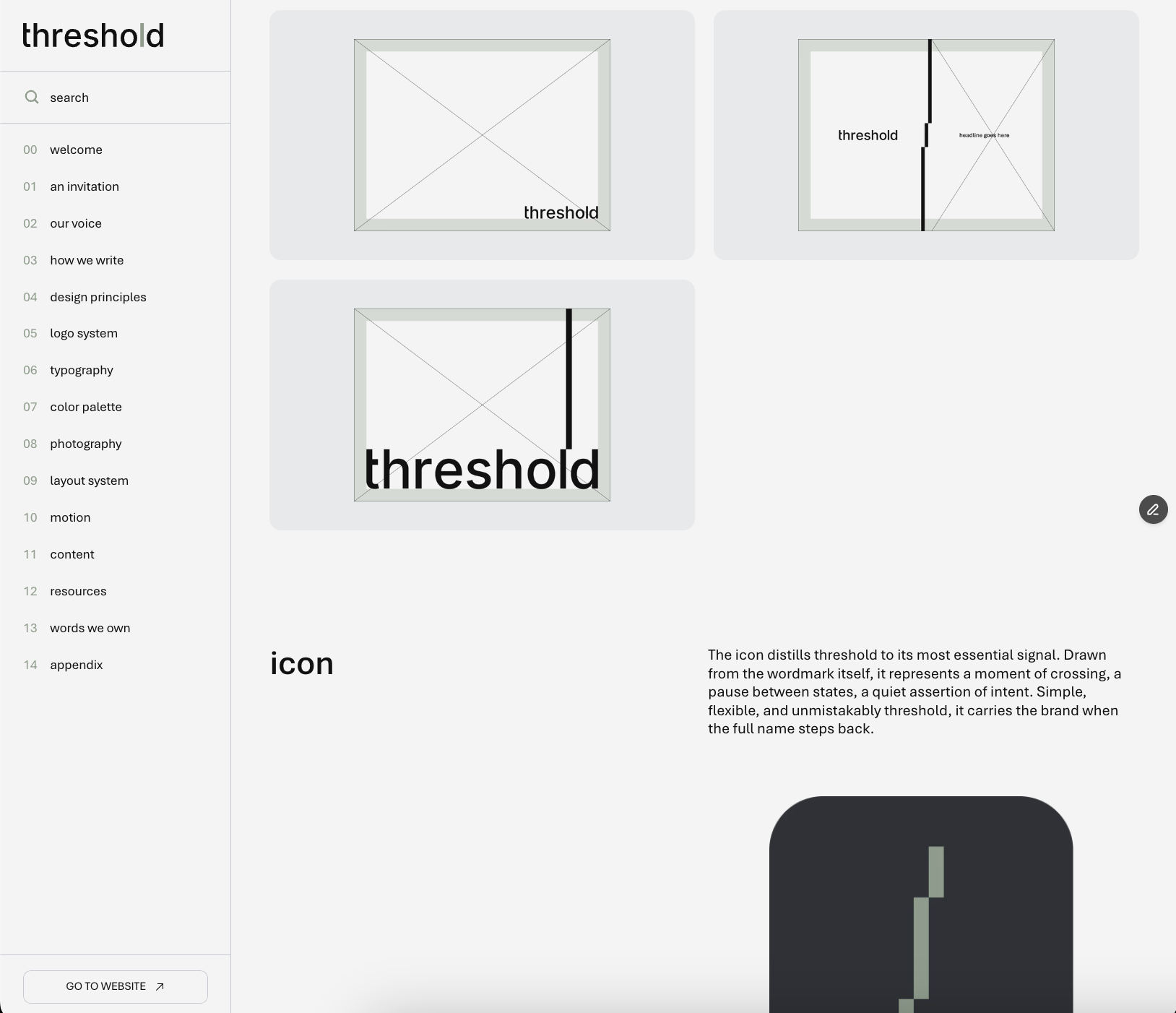 We unified the company under one name, rebuilt the logo for legibility, and created a scalable identity system anchored by the threshold dash, a simple tool that connects, organizes, and guides.