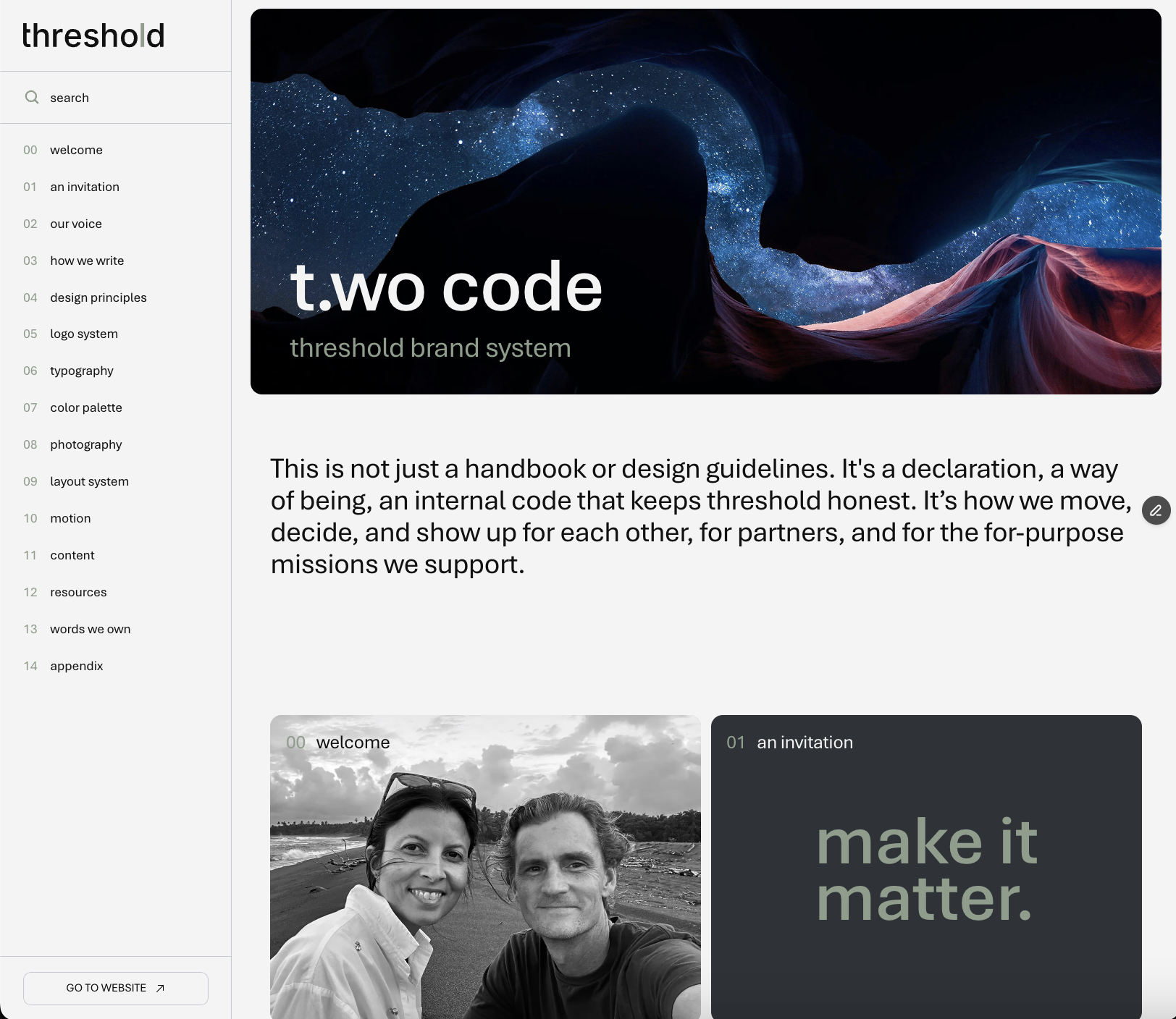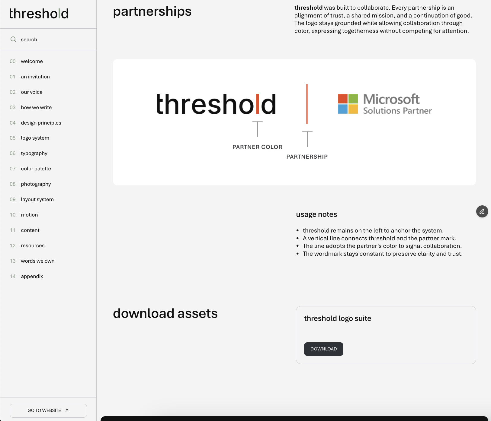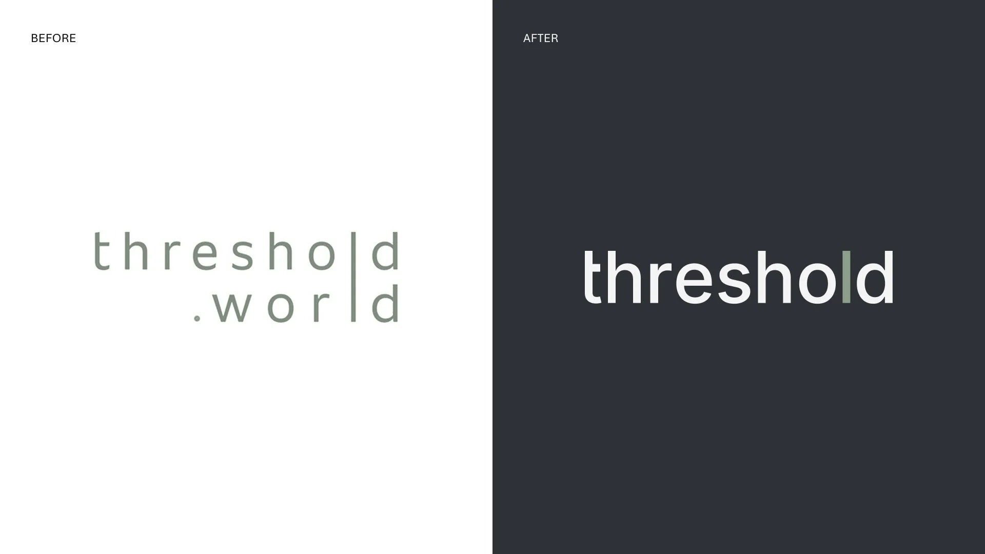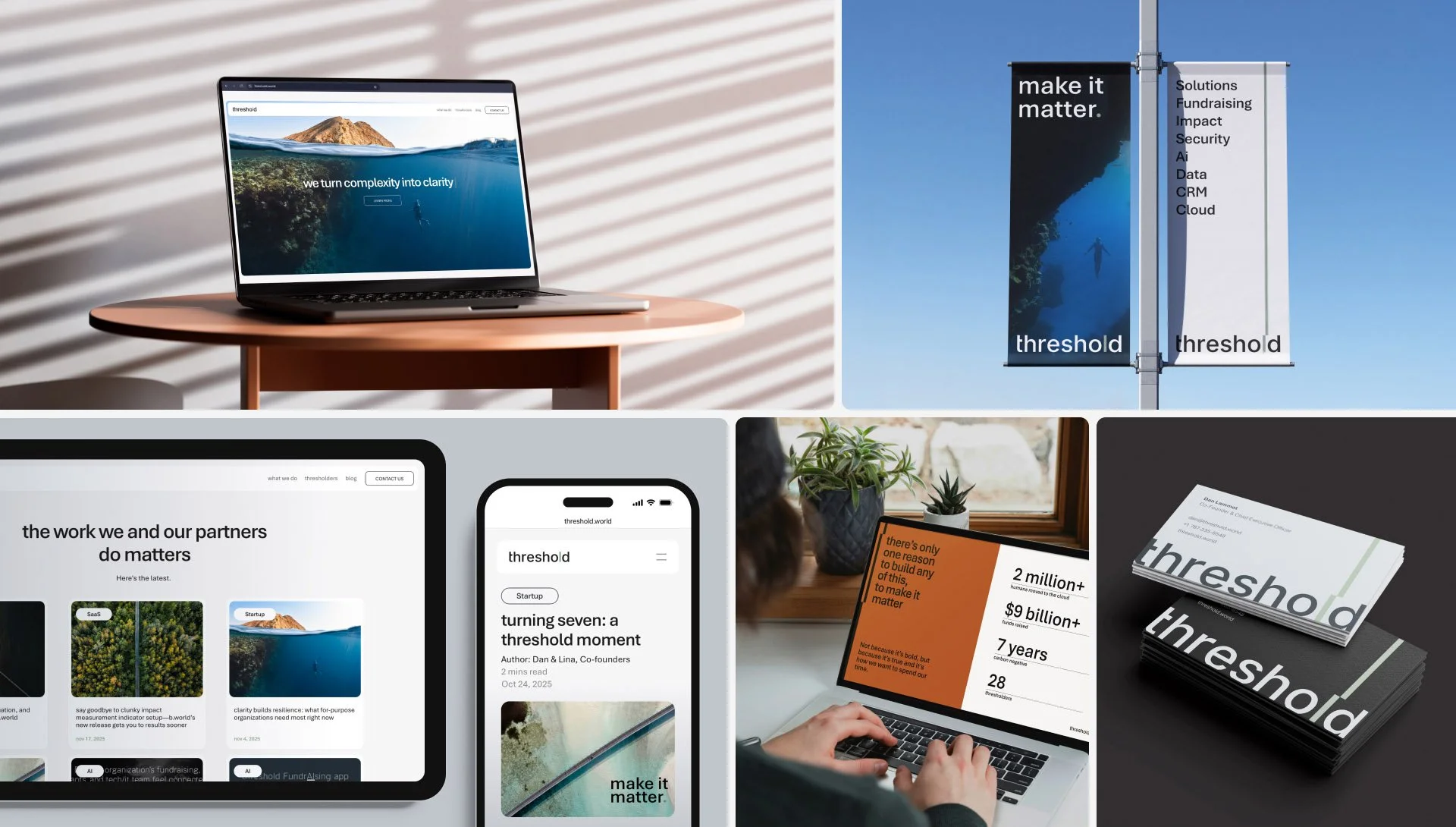 threshold partners with for purpose organizations to design and build solutions that help teams fundraise, manage data, and understand their impact. The company had grown, but the brand had not. Two names carried equal weight in market, threshold.world and b.world, splitting recognition and creating confusion. The offer was difficult to explain, and the identity was complex and inconsistent. For a B2B brand operating in mission critical work, confusion is a liability.