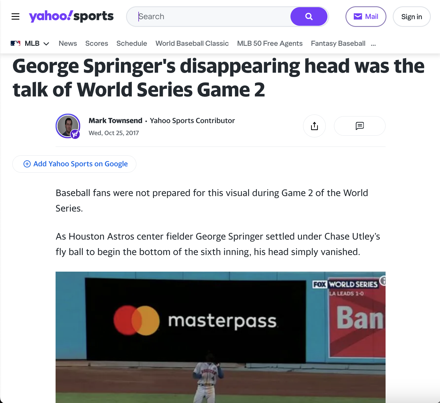 During the MLB World Series, with millions watching, Masterpass (Mastercard's digital wallet) became a random and ridiculous meme thanks to a technical glitch by Fox in which the logo decapitated George Springer. We took advantage of this pop-culture viral moment and fueled the fire with a fun, social campaign. But this time the memes showed how easy it is to buy with Masterpass.